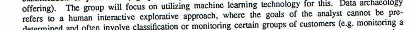 Managing and analyzing large amounts of data? At that point we were even thinking about call detail records. It goes on to say, “Specifically the group will utilize two software technologies that will help to extract knowledge from databases: data mining and data archeology. The data archeology piece referred to: